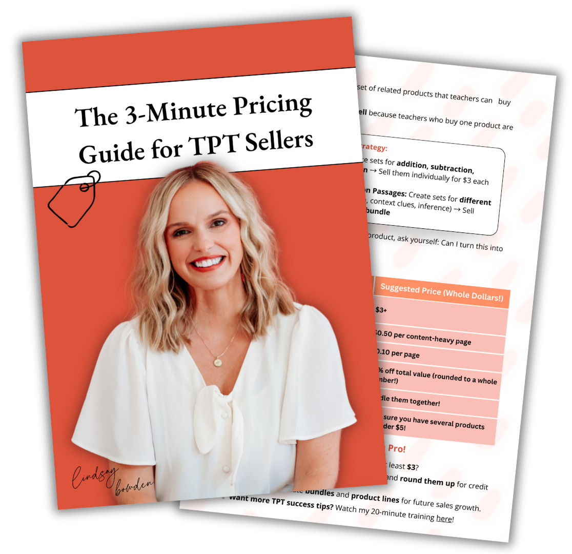 Grab The 3-Minute Pricing Guide for TPT Sellers and stop guessing! This freeĀ guide breaks down exactly how to price your resources to boost sales, show up in TPT search, and actually get paid what you're worth.